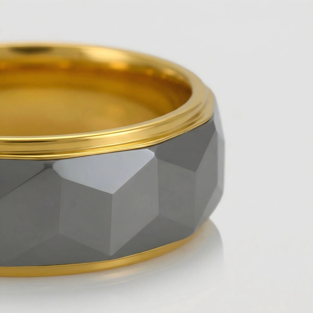 The Prismatic Pillar | Faceted Tungsten & Gold Structural Band